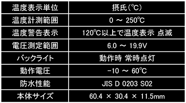 ・ 温度警告機能として、120℃以上になると温度表示文字が点滅