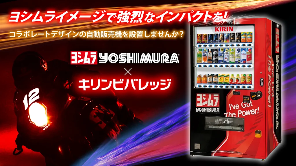 ヨシムラSERT Motulのスポンサー(*) キリンビバレッジ社とヨシムラジャパンのコラボで誕生したスペシャルラッピングの自動販売機!