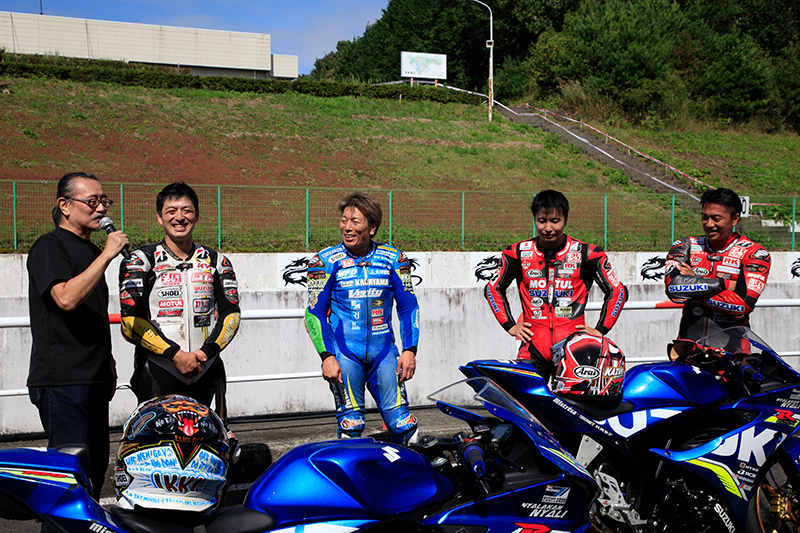 早朝は濃霧に包まれ天候の懸念もありましたが、日中は汗ばむほどの日差しに恵まれ、ヨシムラファン、オートバイファン、レースファン合わせて約250名が集結。豪華ゲストと、サーキットという立地を活かした企画をおもいっきり楽しむ姿が多く見受けられました。