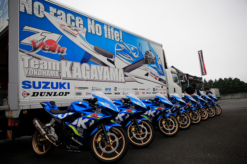 開会前から長蛇の列ができた試乗会には、ヨシムラサイクロンや、BAZZAZオートシフターを装着した注目の車両11台とGSX-R150 SACレーサーを用意しました。