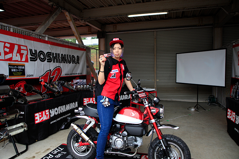 ヨシムラ製品紹介ブースでは、リリース前のMonkey125のマフラーを展示し、多くの注目を集めました。
