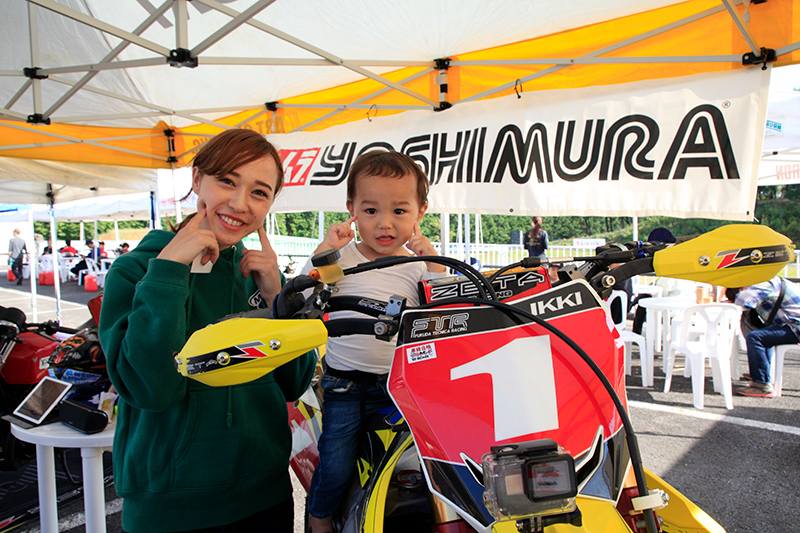 10時半からは、全日本スーパーモト2016年、2017年チャンピオンの森田一輝選手によるスーパーモトデモ走行を行いました。ヨシムラモトクロスサイクロンを装着したSUZUKI RM-Z450で大迫力のスライド走行を披露し、観衆を大いにわかせました。