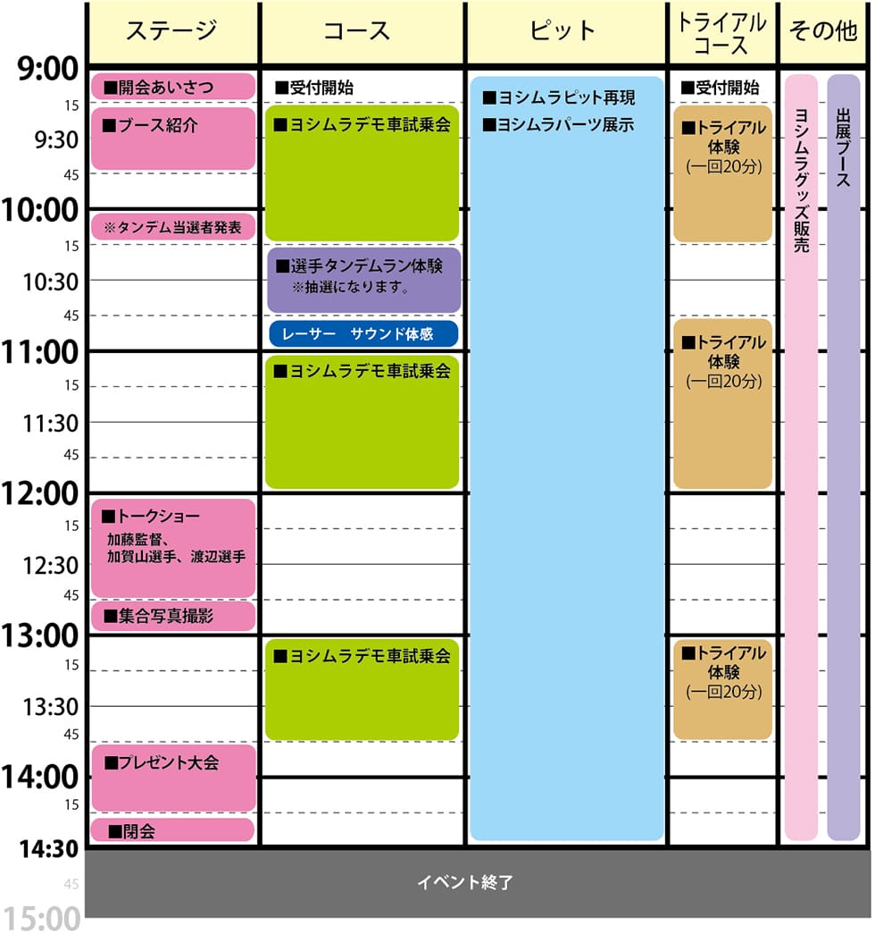 今年も那須モータースポーツランドにて、ヨシムライベントを開催致します。「ヨシムラをもっと体感しよう!」をコンセプトに、サーキットという立地を活かし、ヨシムラのレース活動や製品の体験をして頂くことで、ヨシムラ流オートバイの楽しみ方を提案するイベントです。ヨシムラファンのみならず、バイク好き、レース好きの方など、どなたでもお気軽にご参加いただけます。ぜひご来場ください。
