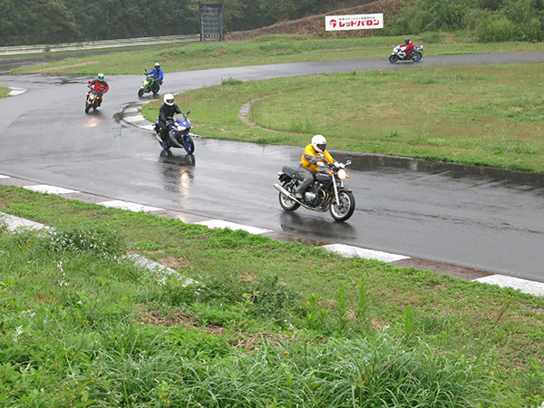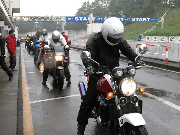 ヨシムラや参加メーカーの商品を「説明を聞き、実物を触って、走行して体感できる」試乗会は、雨の中でも途切れる事無く行われました。