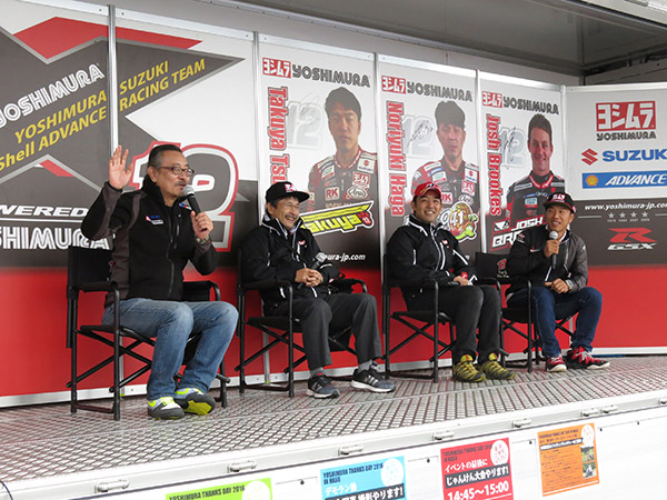午前の部は、今年の8耐を振り返った話を中心として現場で何がどのように判断されたのかを焦点に、午後の部は、全日本選手権JSB1000を焦点に岡山戦の状況から最終戦までの意気込みを皆さんに聞いていただきました。