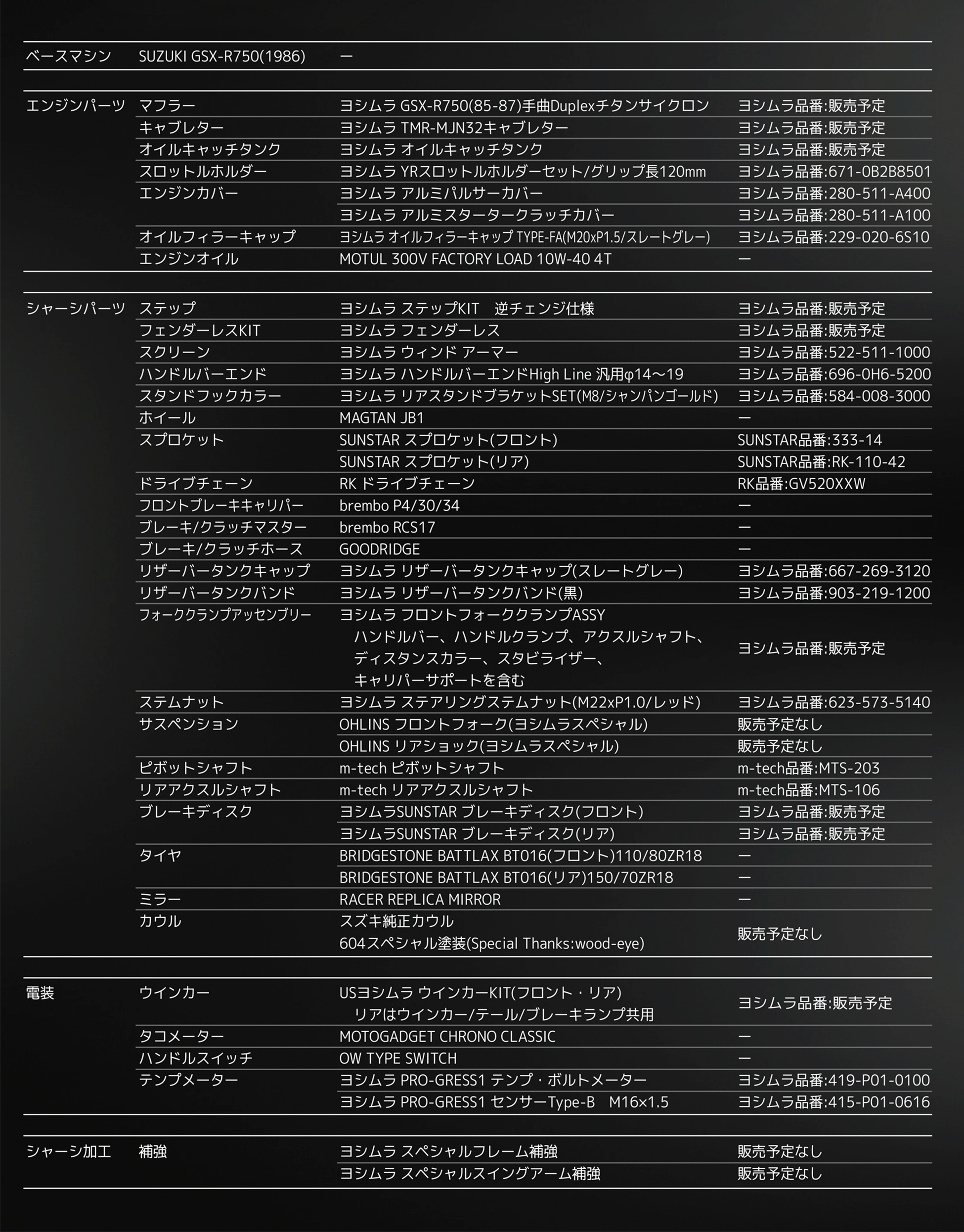 GSX-R750に携わった当時の関係者たちに敬意を込めつつ、現代のヨシムラの技術と情熱が惜しみなく注がれています。