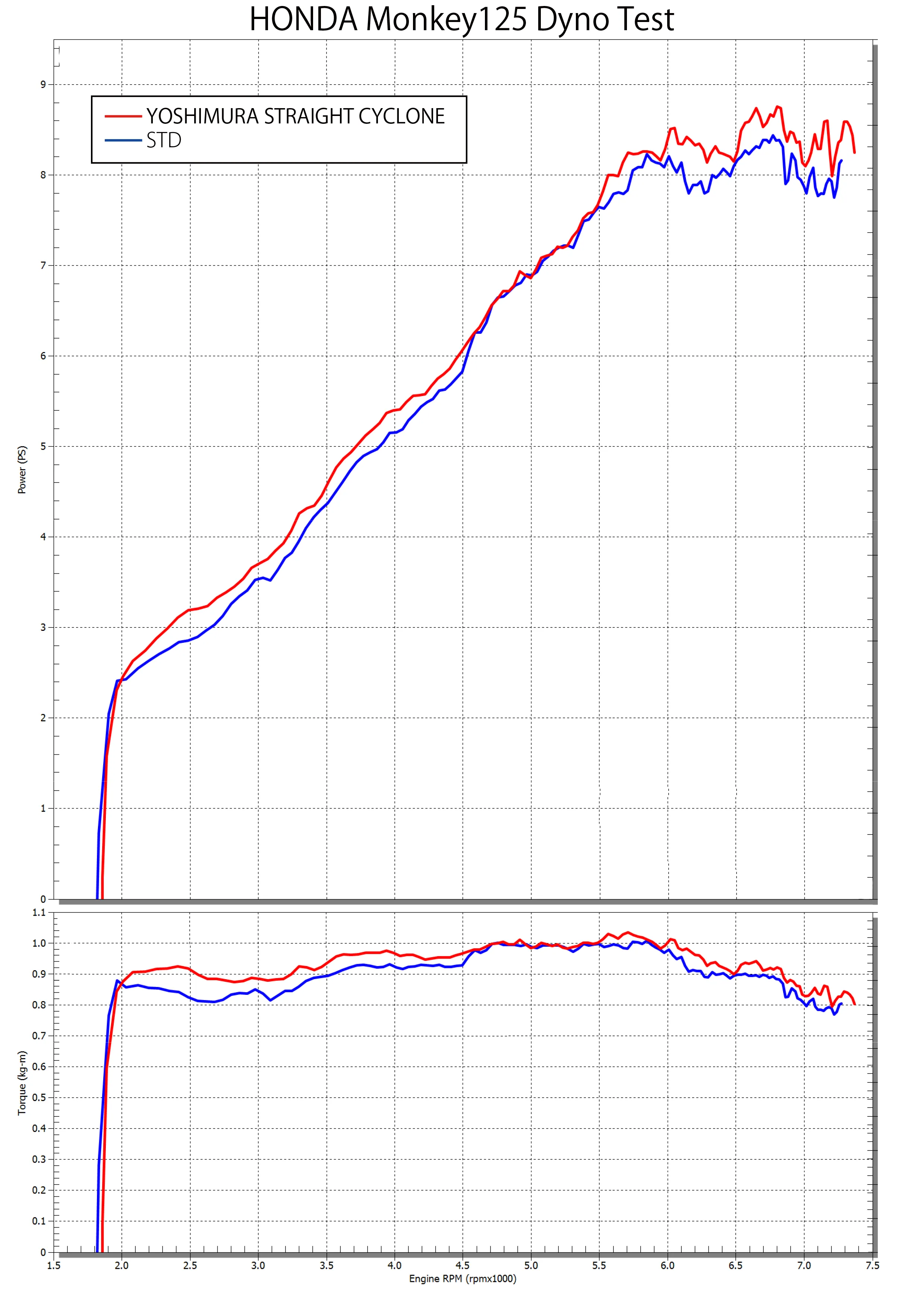ブラック塗装を施したモンキー125用ストレートサイクロンはヨシムラの伝統的なスタイルを継承しながら、音量・排ガス規制に適合したJMCA認定マフラーです。