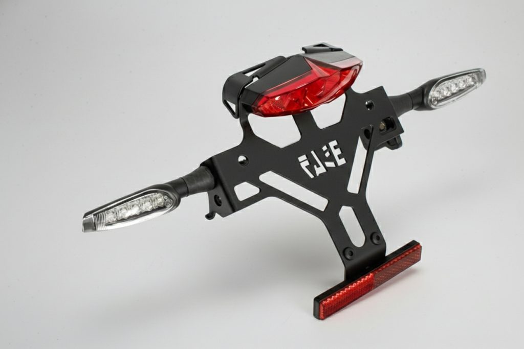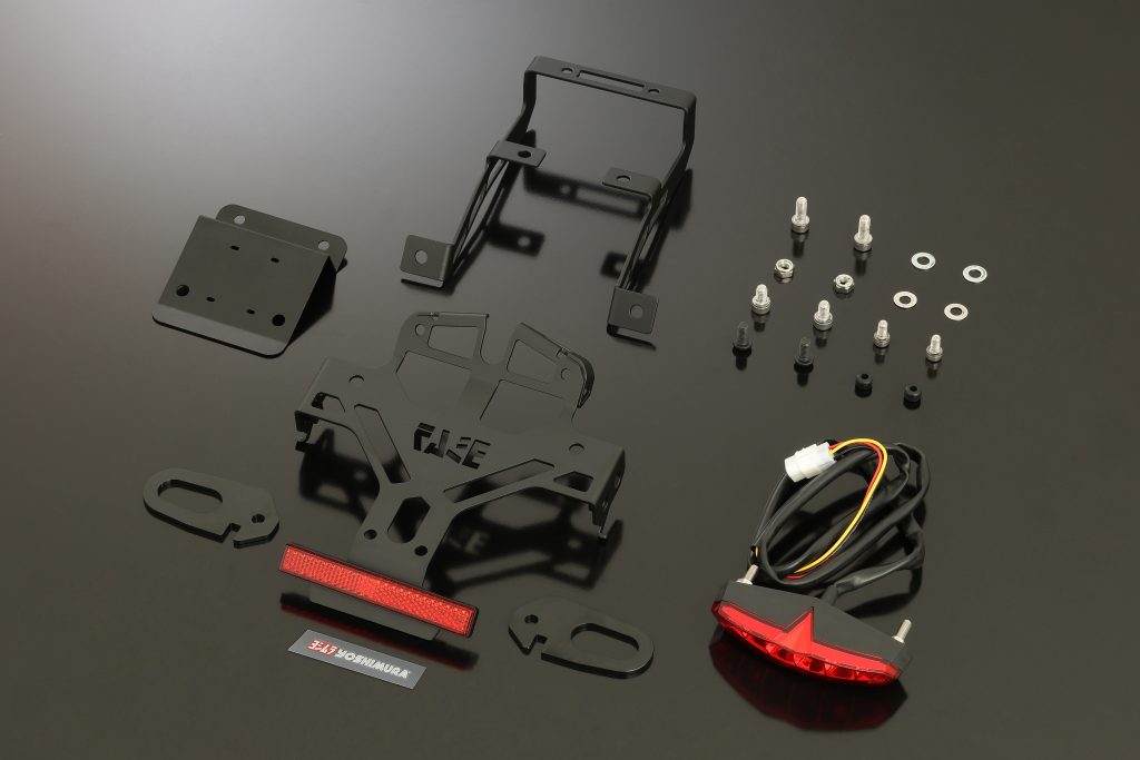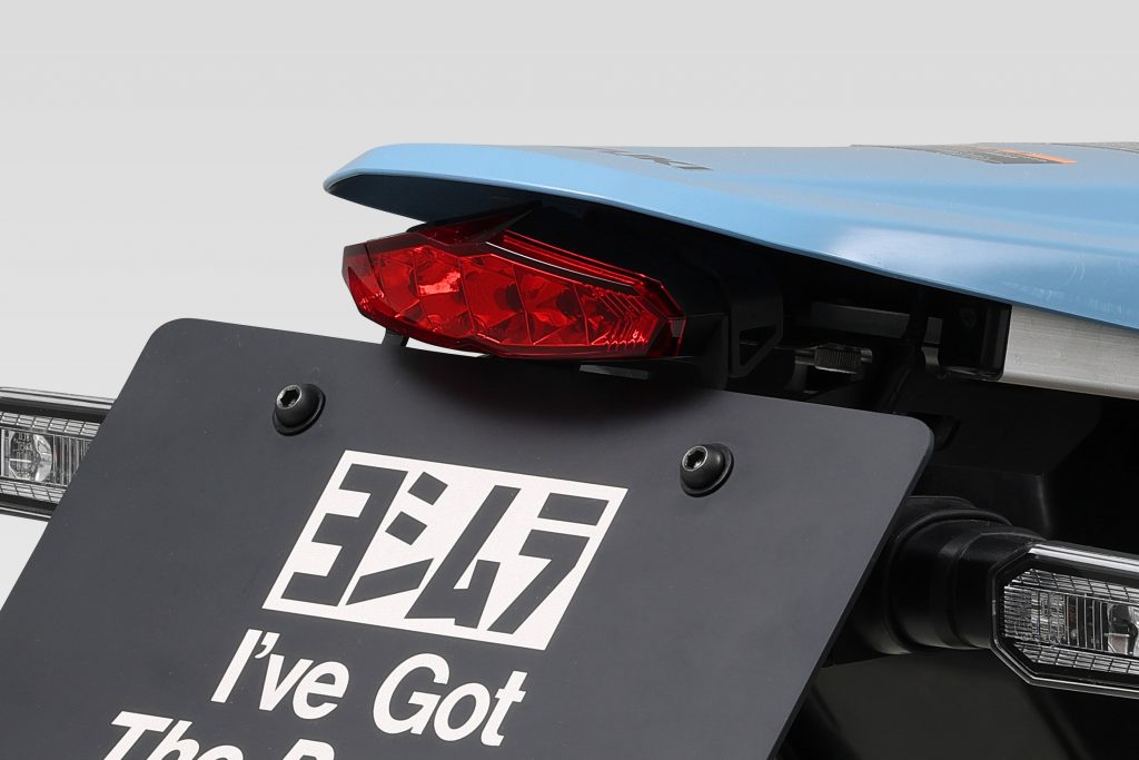 DR-Z4S/SMのスタイリングを引き締めるフェンダーレスキットです。 メインブラケットには、高強度かつ耐腐食性に優れたステンレス材を採用。剛性を損なうことなく小型化・肉抜き加工を施し、リア周りの軽量化に大きく貢献します。