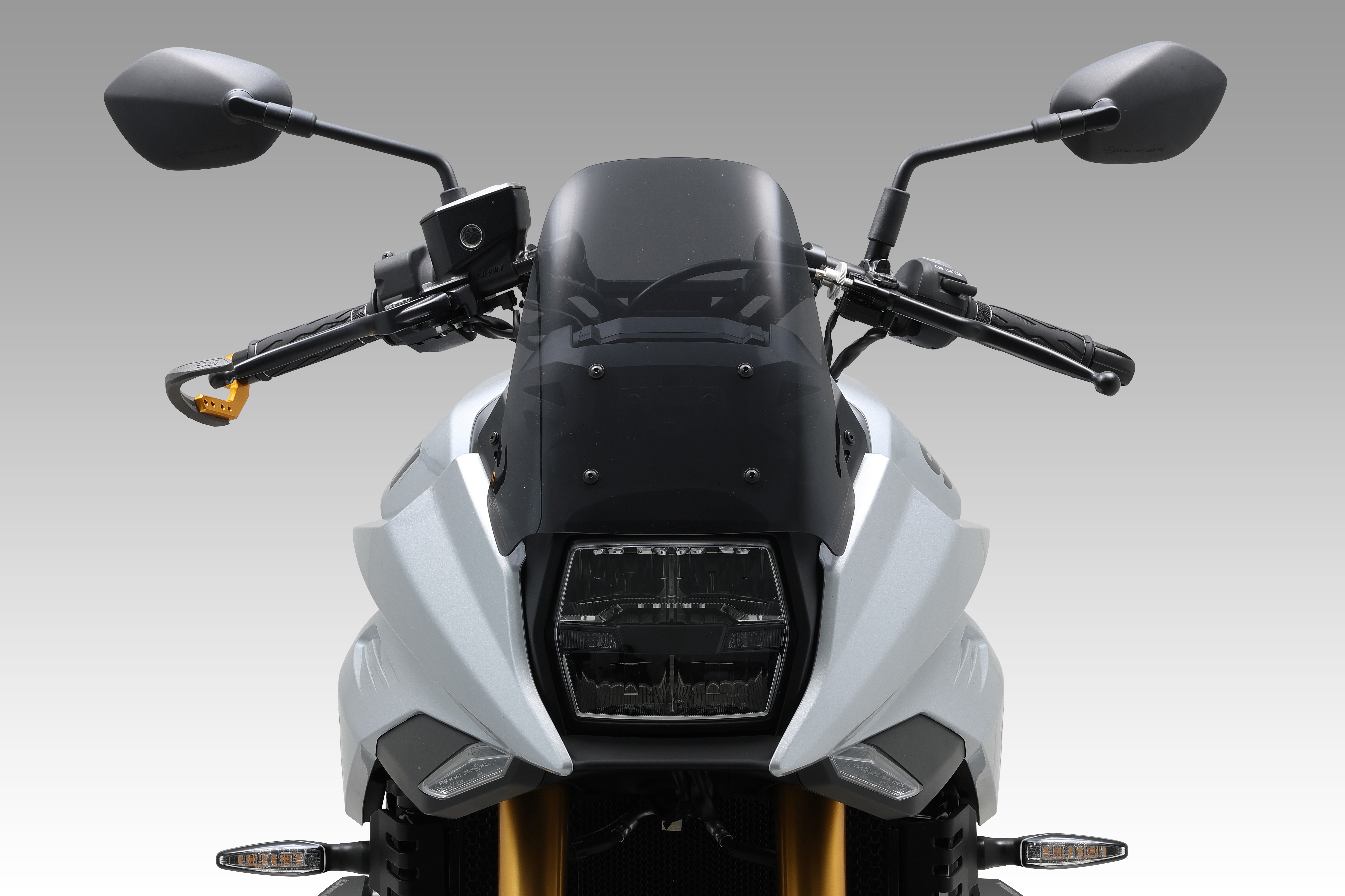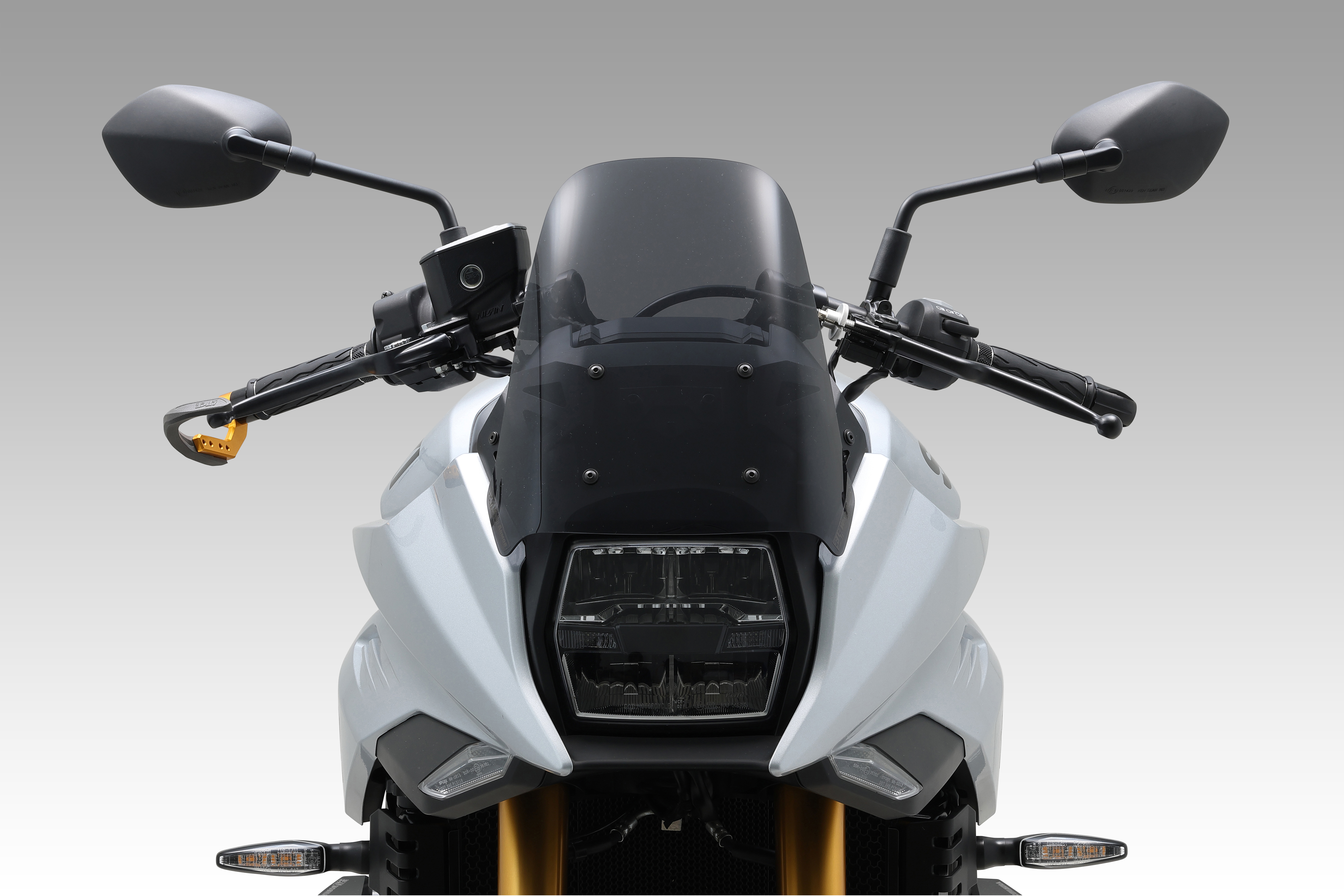 往年の空冷モデルを感じさせる、シャープで洗練されたブラケットデザインを採用。表面処理は、車体の精悍さを引き立てるブラックアルマイト仕上げに変更しました。コックピット周りの質感を高め、確かな存在感を放ちます。