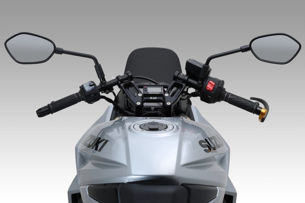 新型KATANA(8BL-EK1AA)の個性を研ぎ澄ます、専用設計ハンドルキットが登場。 往年のGSX1100Sを想起させるロー・フォルムと、現代のライディングに不可欠なコントロール性を両立。 ツーリングからスポーツ走行まで、走る楽しさを深めます。