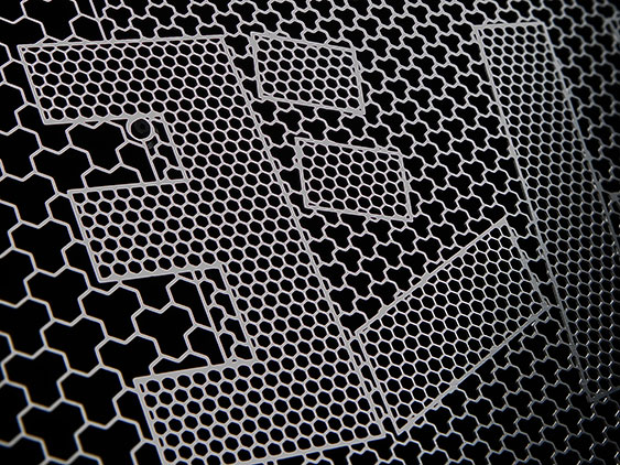 | ・ Design: The patterns are made with etch process and the protector is precisely produced. The 3into1 hexagonal pattern is designed from “Y” of Yoshimura. |