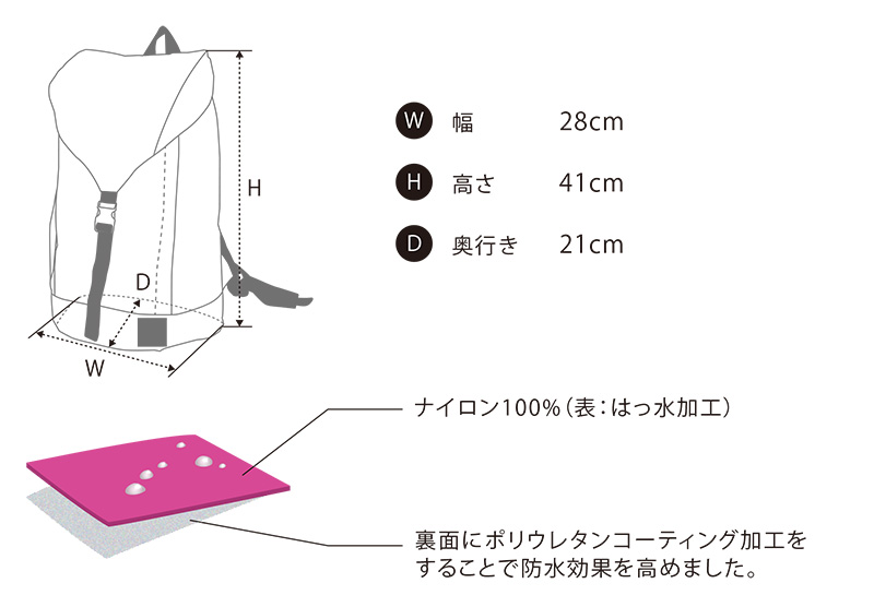 ・持ち運びに便利なパッカブル仕様 ・はっ水加工