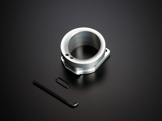 ヨシムラTMR-MJN/TMRキャブレターにフィルターを装着する為のアダプターでアルミ削り出し加工品です。従来のファンネル交換タイプのアダプターではパイロットエアジェットがメインボアの下側にあるためフィルターを通過したエアーを通す事ができませんでした。その為パイロットエアジェットのつまり等の心配がありました。ヨシムラのTMRフィルターアダプターは下部にパイロットエアジェットの通路を設けたことでメイン系/パイロット系両方をカバーします。カバーすることにより、ゴミのつまり防止とメイン系/パイロット系がそれぞれ同じ抵抗のエアーを吸入する事ができます。