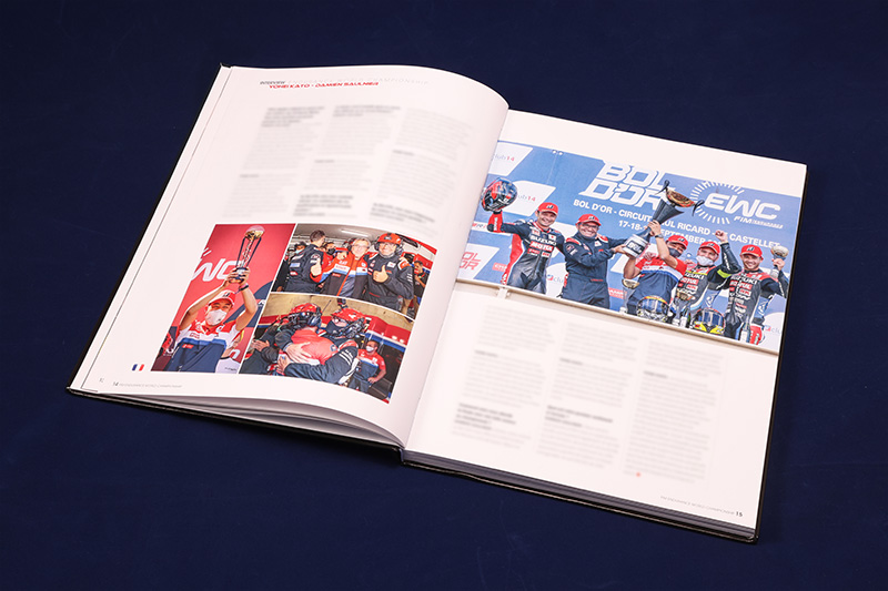 各チームの紹介やレース結果等のデータも掲載されており、新生ヨシムラ SERT Motulとして加藤陽平チームディレクターが初めてフル参戦をし、見事チャンピオンタイトルを獲得した年の記念品にもなる1冊です。