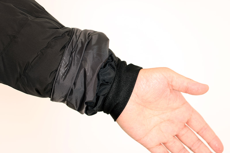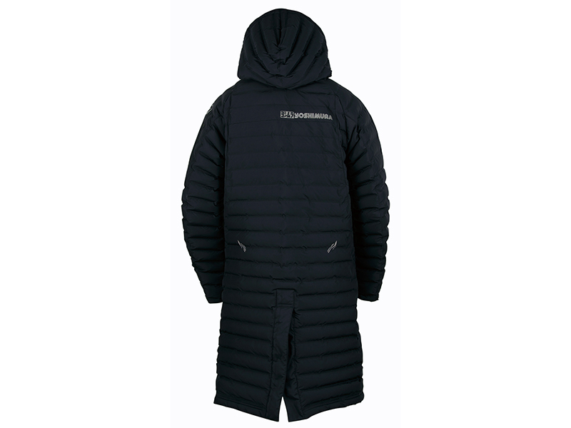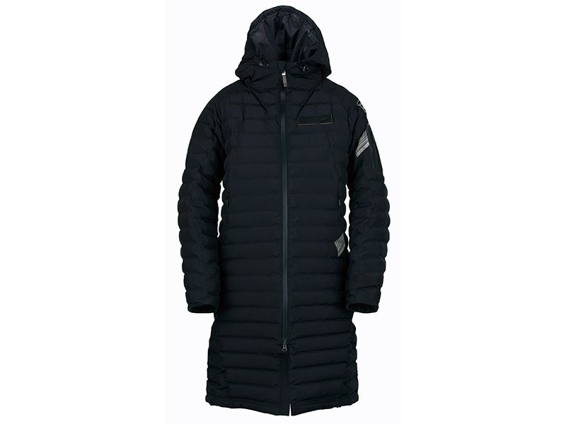 レース観戦から普段使いまで活躍するベンチコート。気室の仕切りを生地の織で形成する仕様で防寒性を高めています。袖口にはストームガードを装備しています。中綿には軽く保温性の高いダウンライクを使用。