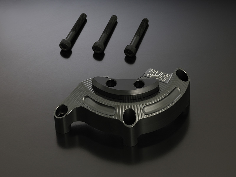 エンジン形状に合わせ、強度とデザイン性を考慮し設計。高精度に削り出されたアルミカバーは金属光沢が美しいスレートグレーにアルマイト加工され、エンジンとの一体感を高めています。