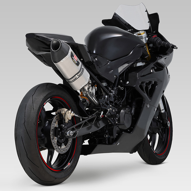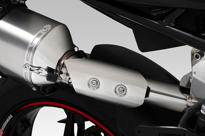 異形断面のサイレンサーにカーボン製エンドを組み合わたR-77Jサイレンサーは数々のレースにおける栄光を受け継いだレーシングスピリッツが宿るマフラーです。サイレンサーの細部にはヨシムラオリジナルのディンプルリベットや肉抜きリベットバンドなど、随所に個性が光るパーツで組み上げられています。