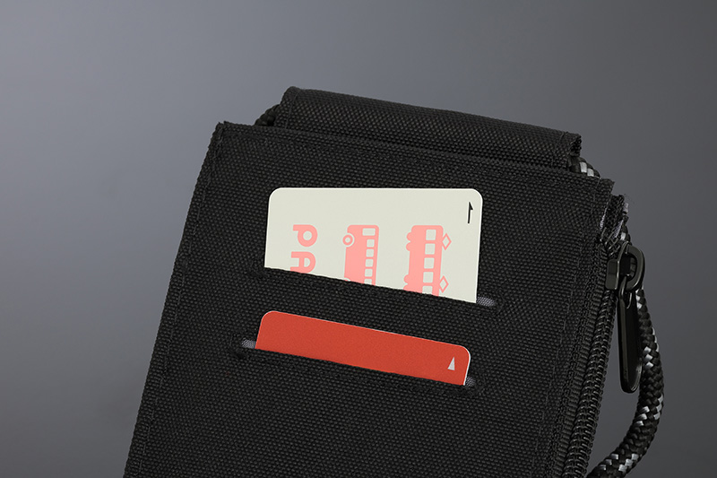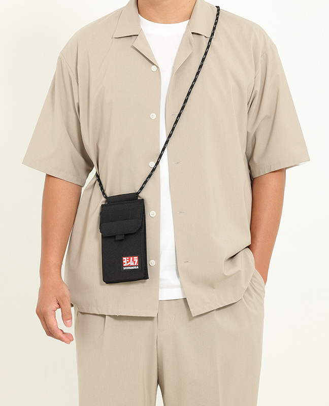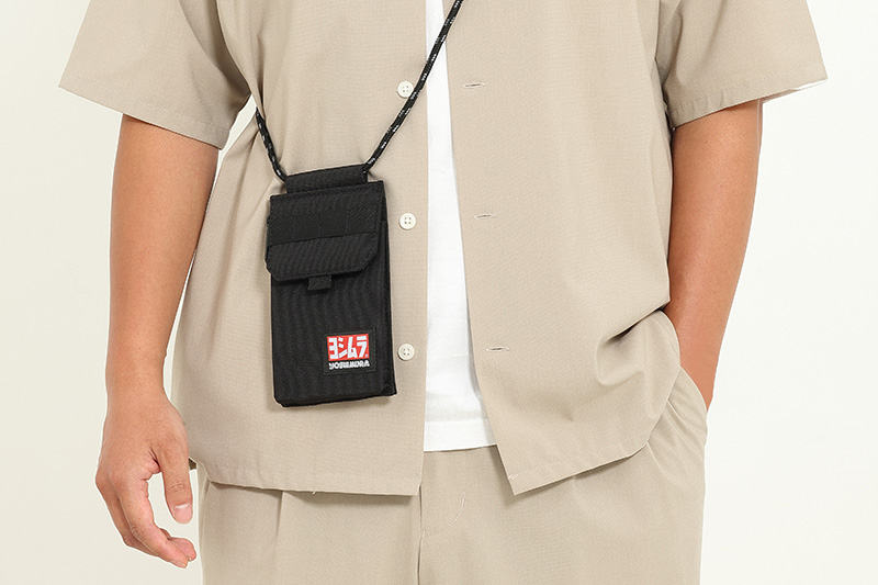 Shoulder rope with simply tied ends. Easy length adjustment.