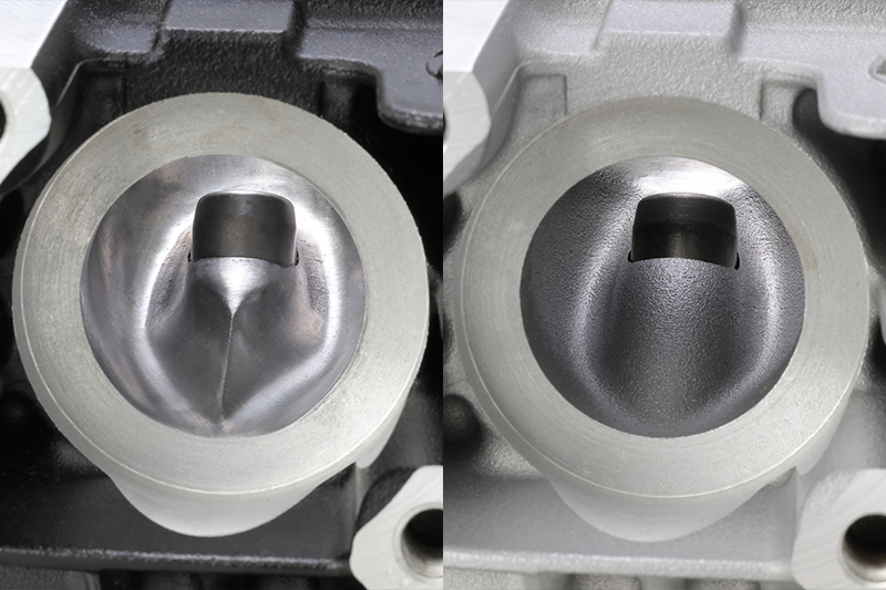 こちらもポート研磨と同じく研磨して鏡面にする事が目的ではなく、吸排気ポートの一部として混合気や排気をスムーズに、より早くより多く通過させる為の形状に調整する作業になります。