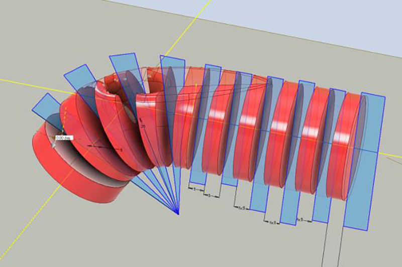STD吸排気ポートのフローベンチデータ、ST-L1カムシャフトのカムプロフィールデータとレース活動からのフィードバックより理想のポート断面積変化を仮定し、3D CAD上でポート形状を設計します。