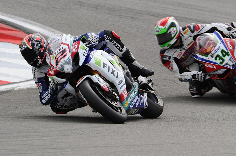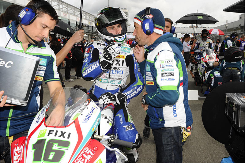 「このサマーブレイクでシーズン終盤に向けてのマシンのアップグレードが出来ました。エンジンスペックも見直して、ここニュルブルクリンクでもうまく機能 しています。ヨシムラジャパンからヨーヘイ・カトウも技術サポートに来てくれているしね。レオンはニュータイヤでもユーズドでも自信を持ってマシンをコン トロールしているし、どのサーキットもスーパーバイクでの初レースになるジュールもきちんと進歩している。初日としてはまずまずのスタートだったんじゃな いかな。」(FIXIクレセントスズキ ポール・デニング監督)