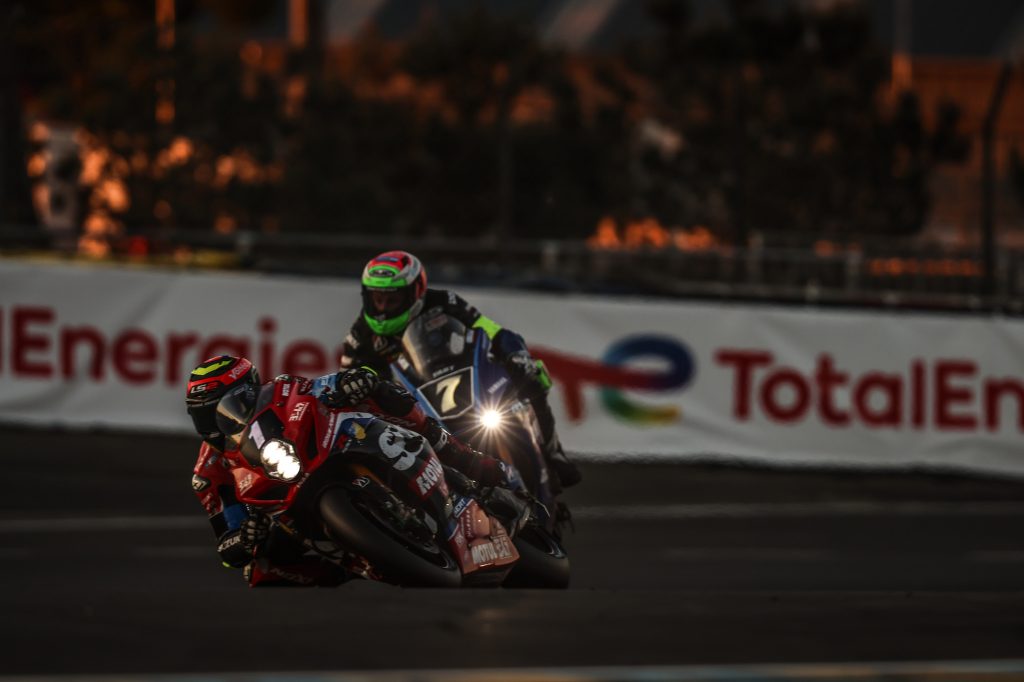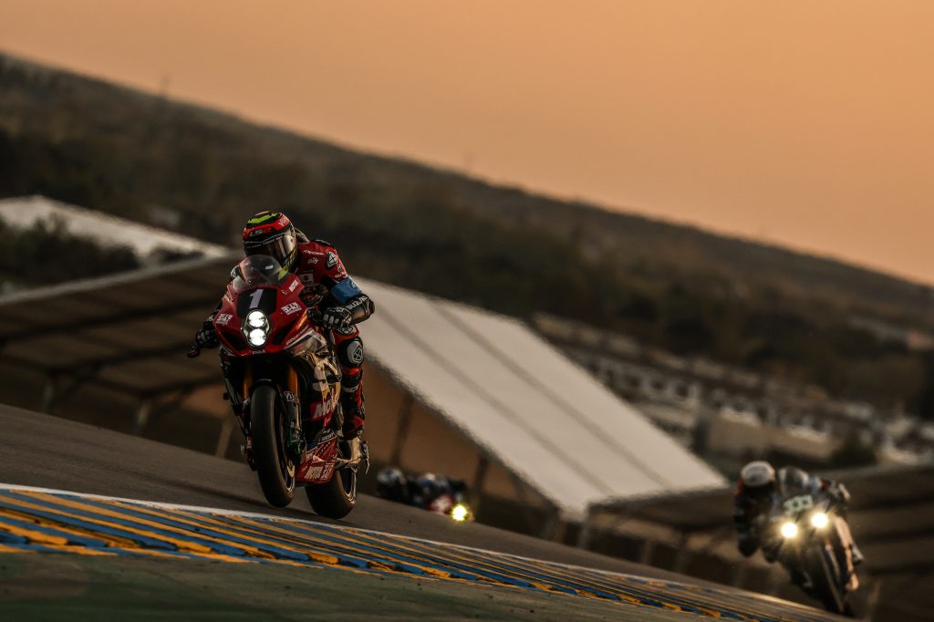 夜間走行では各ライダーが計画通りに走行していく。強力なライバルの猛追に対し、常に一定のアドバンテージを確保し、日本とフランスの合同チームであるヨシムラSERT Motulはディフェンディングチャンピオンらしい安定感でレースを引っ張り続けた。夜が明けるタイミングではブラック選手が1分36秒195というラップレコードを記録し、レース後半に向けての更なる強い走りを予感させた。