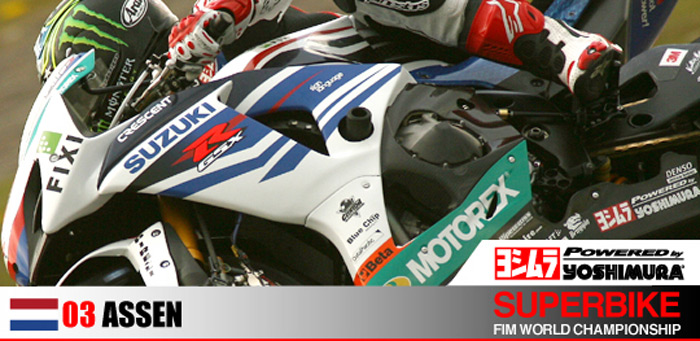 WSBK第3戦は、前戦終了後の合同テストで好タイムをマークしたレオン・キャミア選手(以下、L・キャミア選手)と、怪我から復帰後の状態が回復してき たジョン・ホプキンス選手(以下、J・ホプキンス選手) にて臨んだが、オランダの変わりやすい天候に翻弄され難しいコンディションでのレースとなった。