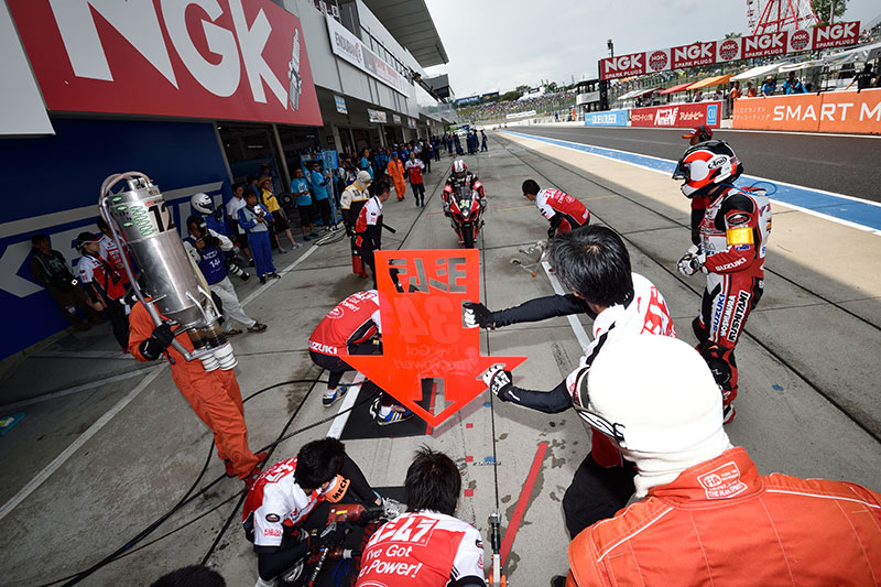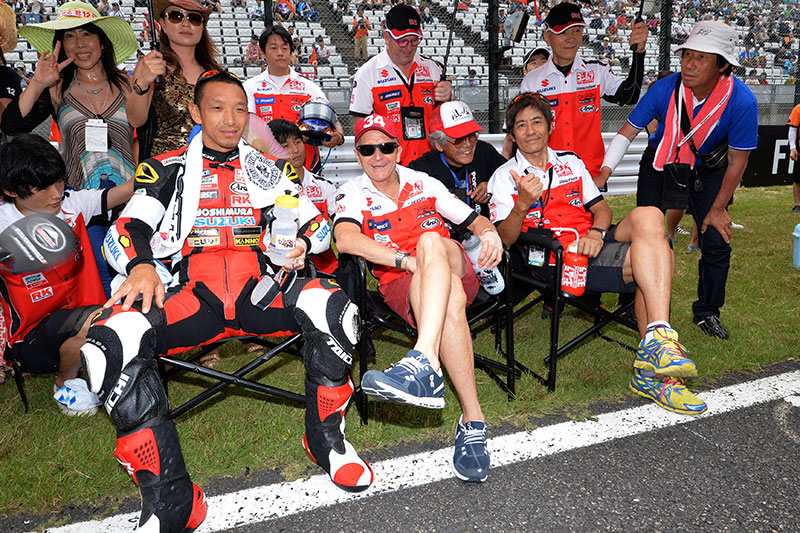 午前のフリー走行では、#34チームは3番手、#12チームは9番手タイムをマーク。そして午後の公式予選では、3人のライダーに合計7本という厳しいタイヤ仕様本数制限が課せられる中、#34は津田がチームベスト2分08秒752をマークして4番手となり、トップ10トライアル出場権利を獲得。そして#12は、シュワンツが組別19番手、辻本が組別30番手とトップ10トライアル進出が危ぶまれるなか、最後に出場した青木がチームベスト2分09秒338をマークして組別4番手タイムを獲得し、総合9番手でトップ10トライアル進出を果たすことができた。