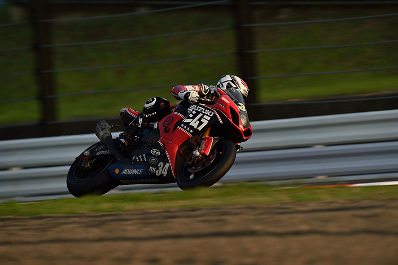 この日はサポートレースの鈴鹿4時間耐久と、鈴鹿8耐のフリー走行、そしてトップ10トライアルが行なわれる。フリー走行では、#34が6番手タイムをマークし、#12は10番手。ヨシムラの2チームともが着実にマシンのセットアップを進め、トップ10トライアルに駒を進めることとなった。