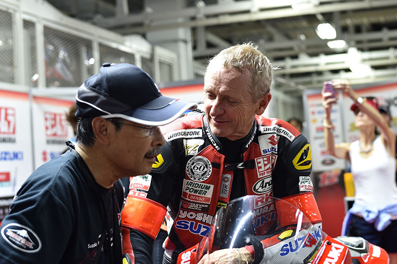 ヨシムラ創立60周年となる、節目の2014年。ヨシムラスズキは2008年以来の2台体制で鈴鹿8時間耐久ロードレースに参戦。1チームはゼッケン34津田拓也/ジョシュ・ウォーターズ/ランディ・ドゥ・プニエ組で、もう1チームは「レジェンドofヨシムラスズキ」とネーミングした、ゼッケン12ケビン・シュワンツ/辻本聡/青木宣篤組だ。#34は言うまでもなく、ヨシムラが優勝を狙うエースチームで、#12はヨシムラ創立60周年のメモリアルチームという意味合いながら、ともに優勝を狙っていくチームであることに変わりはない。