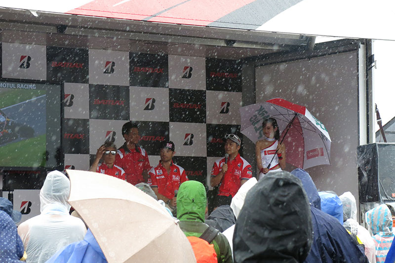 この金曜日朝9時に台風6号が発生し、27日は三重地方を通過するという予報が出された。トップ10トライアルがどうなるか、予断を許さない状況となっていった。実際に台風は土曜日に三重県を直撃。このため、土曜午後のフリー走行、トップ10トライアルはすべてキャンセルとなった。この結果、決勝のスターティンググリッドは金曜日の計時予選結果が反映されることになり、ヨシムラは5番手の位置からゴールを目指すことになった。