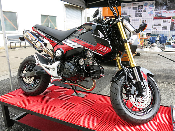 ヨシムラ車両展示では、東京モーターサイクルショーで展示したKTM1190アドベンチャー、BMW S1000RR、隼(国内仕様)、話題となっているGROM(キャブ仕様)、それ以外にもGSX-R1000、MONKEYを用意しました。