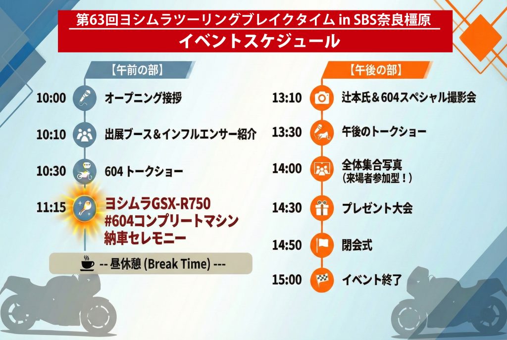 第63回ヨシムラツーリングブレイクタイム in SBS奈良橿原 ヨシムラGSX-R750#604コンプリートマシン納車セレモニー開催のお知らせ
